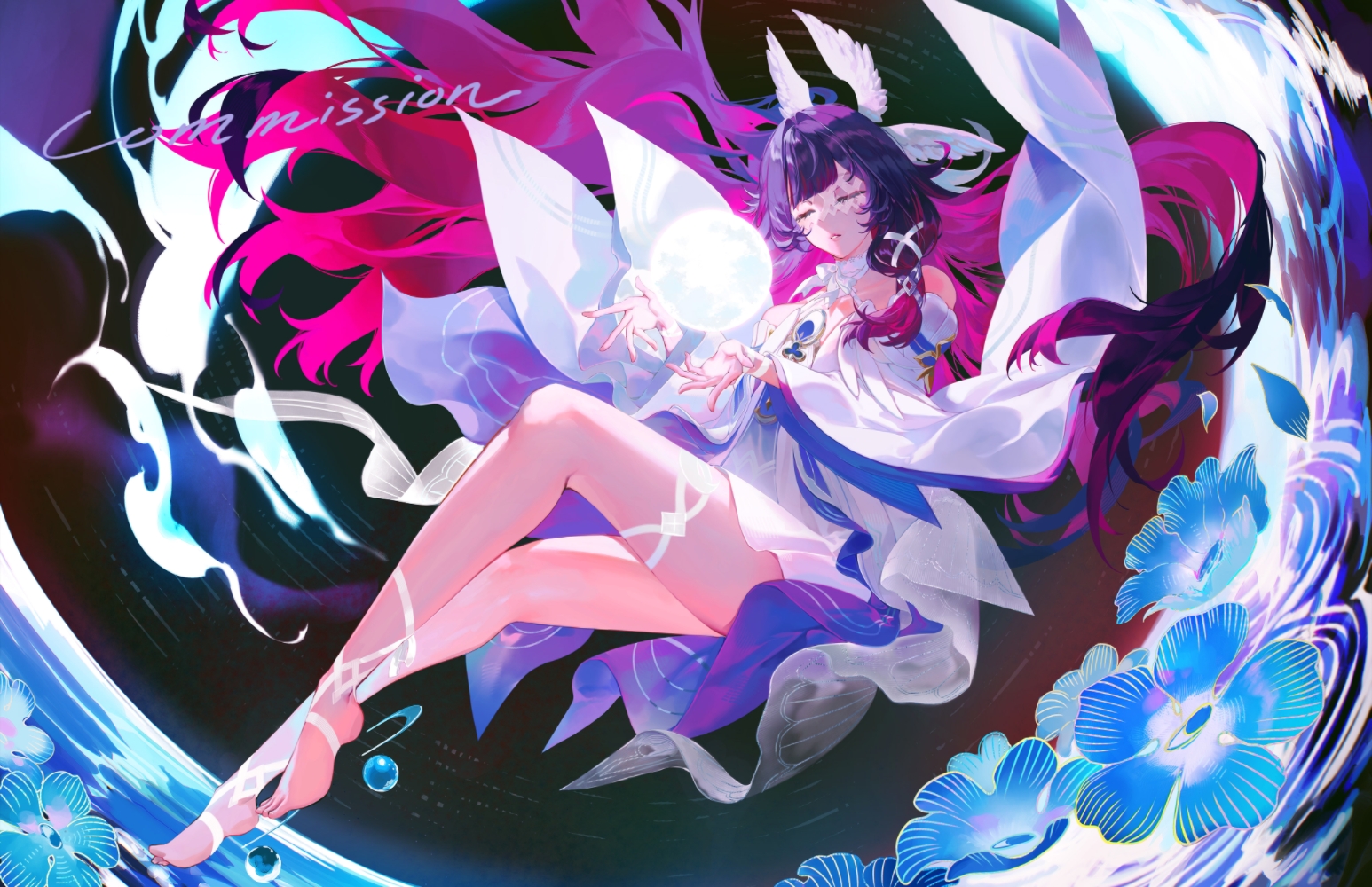Print of Columbina/Damselette from Genshin Impact signed by her English voice actor Emi Lo. 11x17 printed on holographic paper. Art by shei_babu.